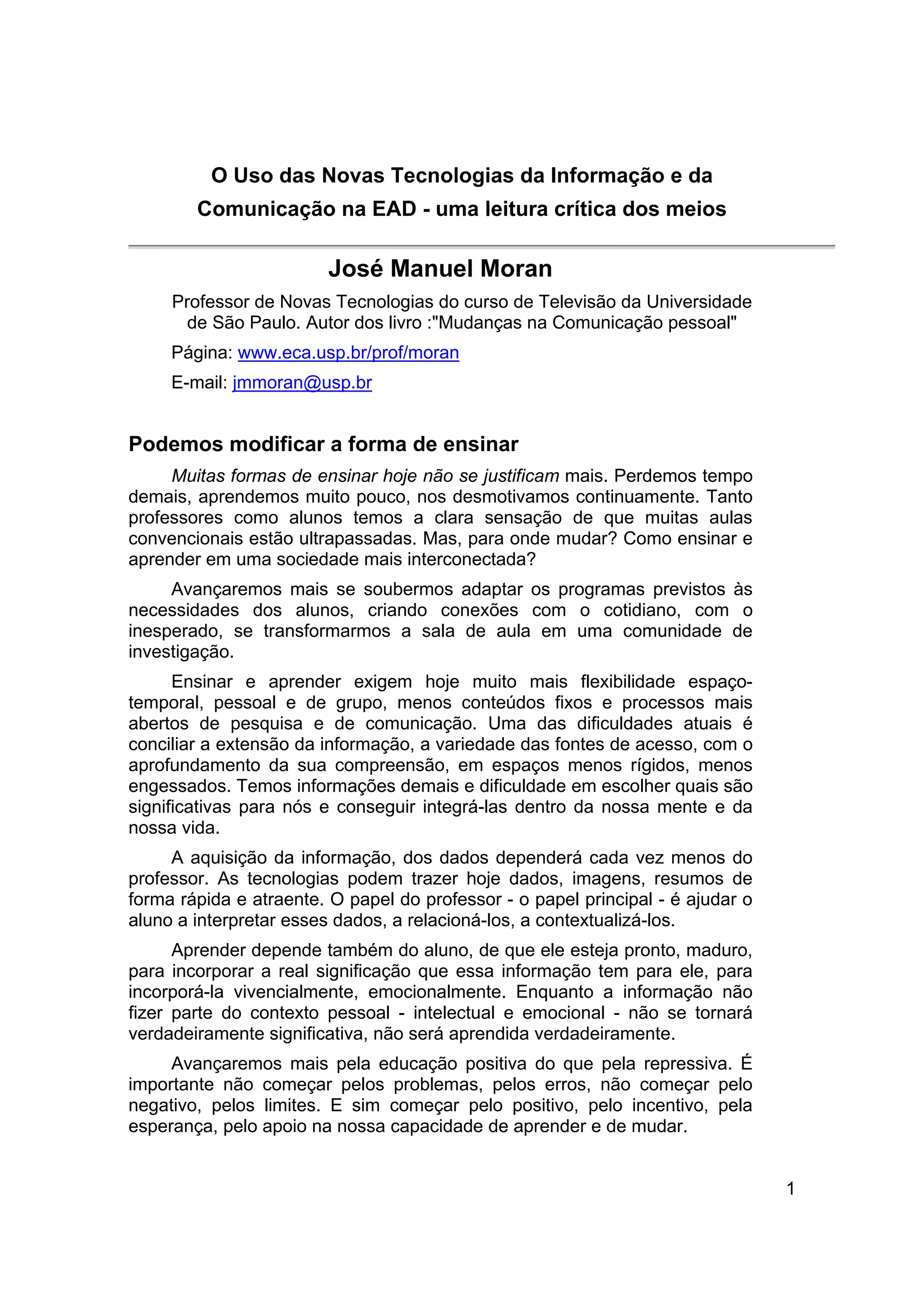 1) O documento discute as mudanças necessárias na educação para se adaptar à sociedade mais interconectada, com foco na flexibilidade e na integração das novas tecnologias.