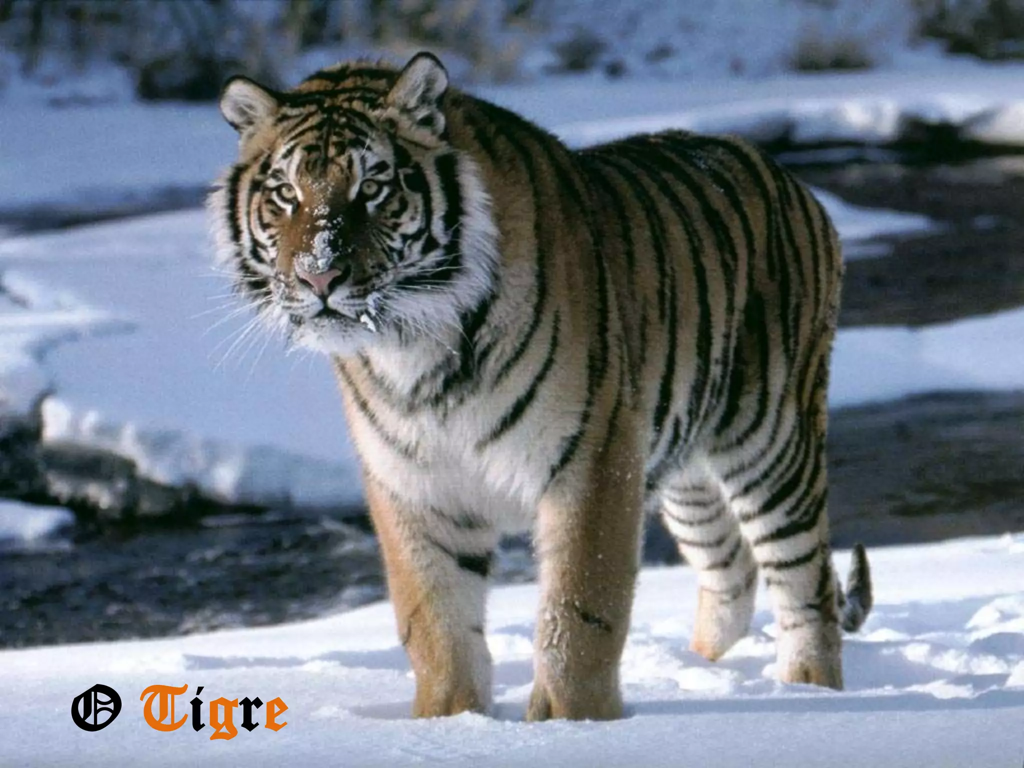 TigreO tigre éo animal de maior porte e o mais pesado da família dos felinos e muito temido por outros animais e humanos. Este mamífero tem o clássico pêlo cor-de-laranja e preto. Faz a patrulha do seu território e gosta de caçar sozinho, persegue a sua presa e mata-a em emboscadas. Tem uma força enorme consegue abater animais muito maiores que ele próprio. Existia na Ásia, o tigre está agora restringido a pequenas áreas da Índia e países vizinhos.