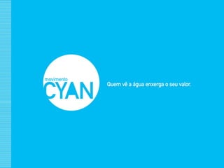 O documento discute a escassez global de água doce e as ações da Ambev para promover o uso sustentável da água. Ele descreve que 97,5% da água do mundo é salgada nos oceanos, a Ambev reduziu significativamente o consumo de água em suas operações, e lançará a campanha "Movimento Cyan" para conscientizar o público sobre a importância da água.