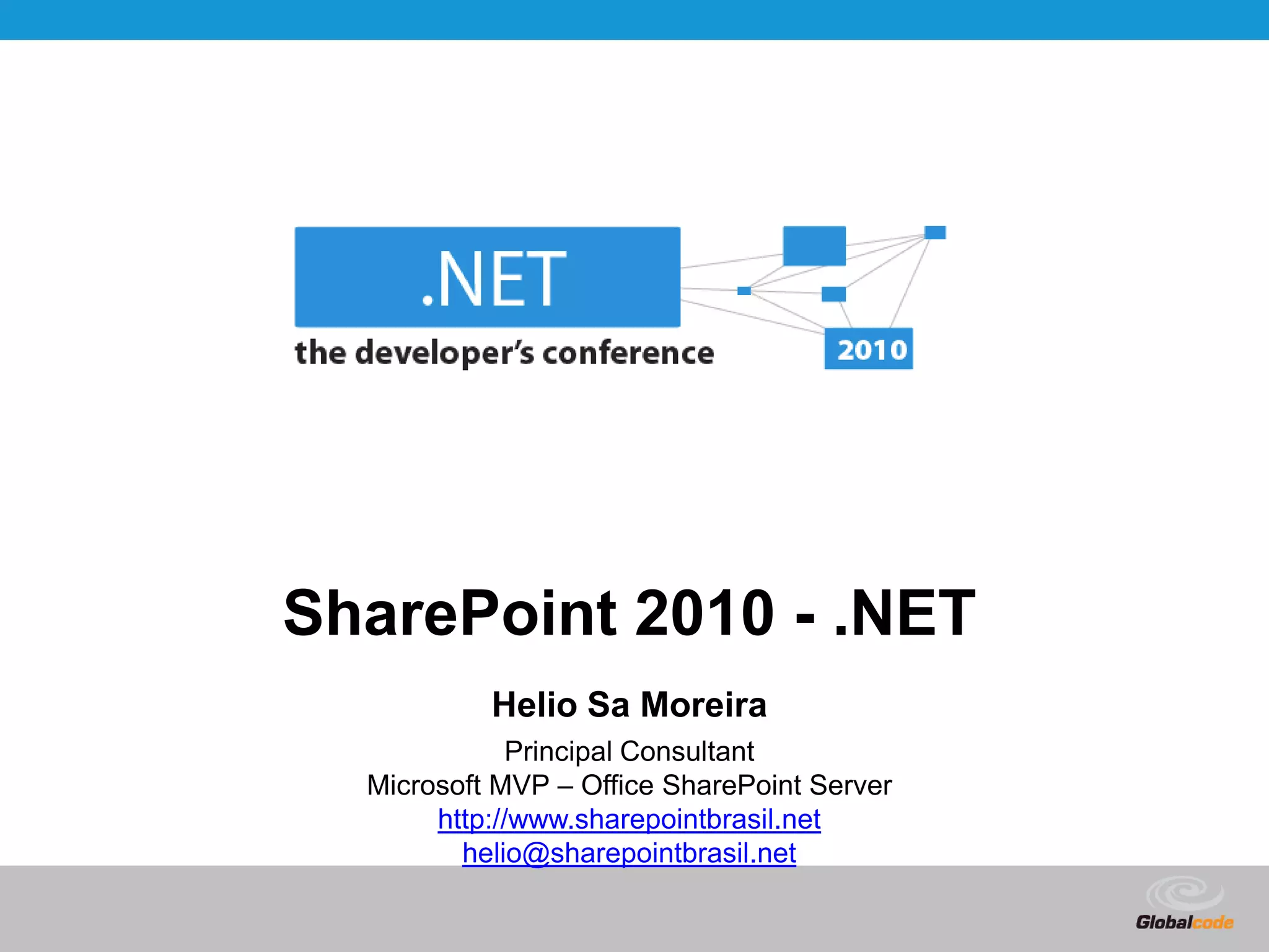 O documento apresenta uma visão geral das tecnologias do SharePoint 2010 e as vantagens para desenvolvedores, incluindo ferramentas de desenvolvimento como Visual Studio 2010 e SharePoint Designer. Também discute opções de acesso a dados, como REST APIs, ClientOM e ServerOM.