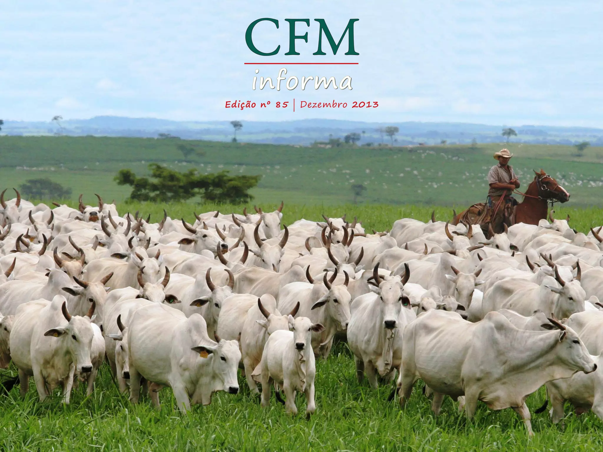 O documento menciona a qualidade genética dos touros da CFM, que têm mostrado um desempenho superior na pecuária, especialmente em rondônia, onde diversos pecuaristas, como Edivaldo, destacam o ganho rápido de peso e a reliability dos animais. Além disso, as exportações brasileiras de carne bovina atingiram um recorde de US$ 6 bilhões em 2013, com expectativas de crescimento para 2014, impulsionadas pela demanda externa e a reabertura de mercados. A CFM continua a oferecer touros nelore com certificados de qualidade e promove vendas diretas para atender a demanda dos pecuaristas.