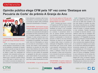 1) A CFM foi novamente eleita como "Destaque em Pecuária de Corte" pelo 16o ano consecutivo, refletindo a qualidade e seriedade de seu trabalho de seleção genética de Nelore por mais de 30 anos.