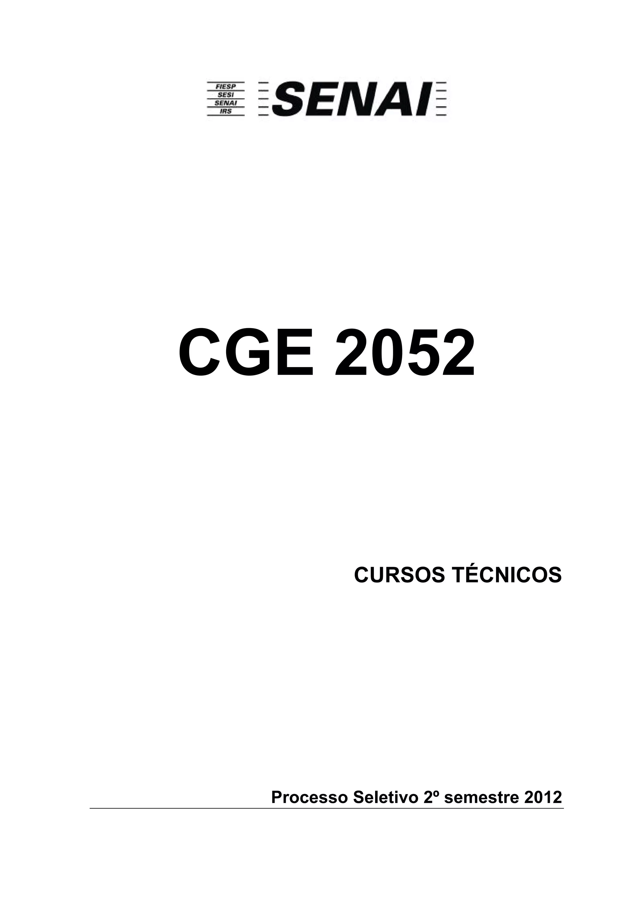 Este documento fornece instruções gerais sobre um processo seletivo para cursos técnicos, incluindo informações como a verificação do caderno de questões, o formato das questões e respostas, e uma amostra de questão. O texto também instrui os candidatos a não virarem a página até receberem orientação do examinador.