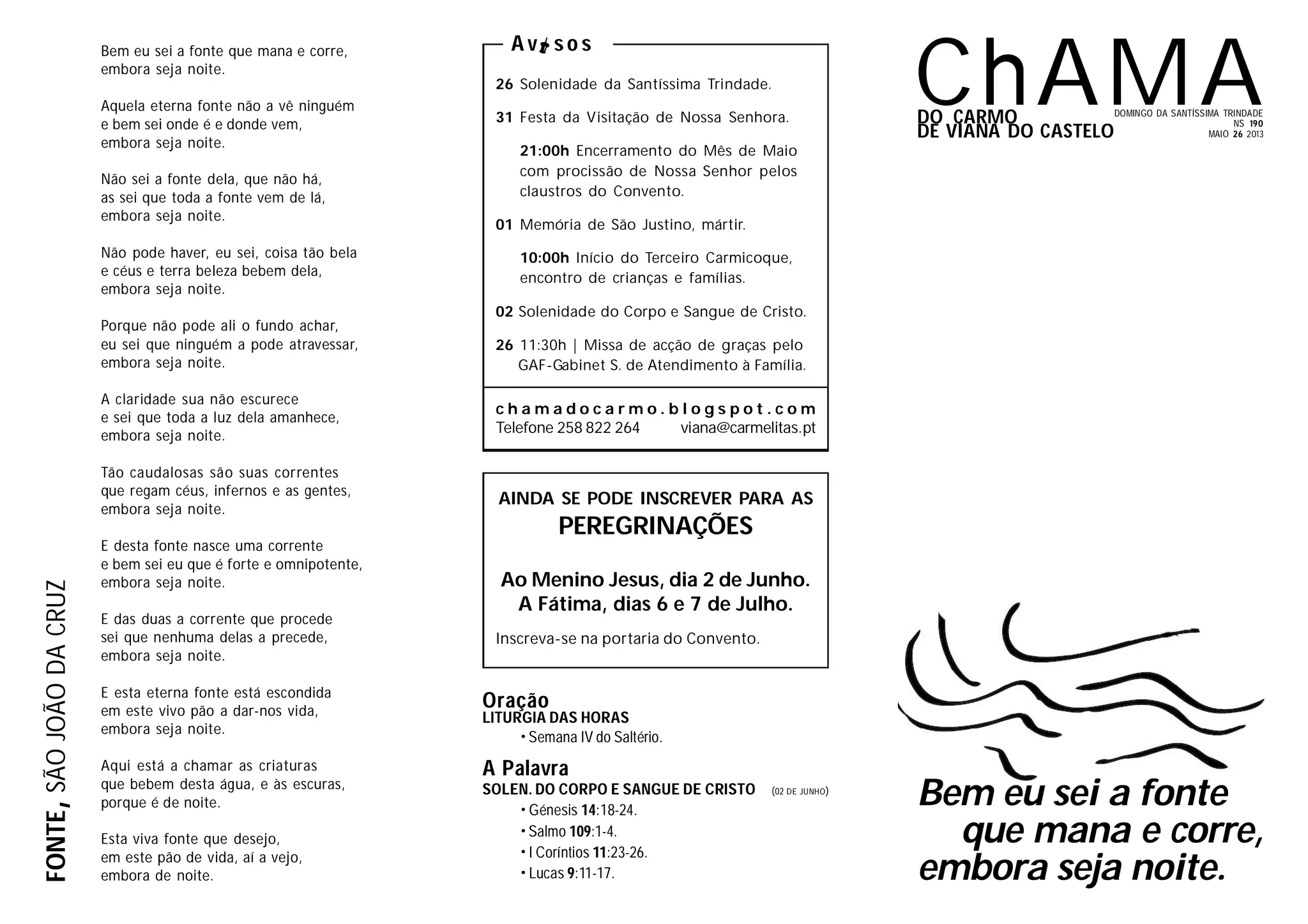 O documento descreve uma poesia de São João da Cruz sobre a Santíssima Trindade. Nele, São João da Cruz afirma que, apesar da escuridão da fé, sabe com certeza onde se encontra a fonte da vida, que é Deus. Como uma fonte que brota e corre, Deus sai de si mesmo para criar e saciar a humanidade. Apesar de não poder ver Deus, a fé nos ilumina e sabemos que Ele permanece conosco na Eucaristia.