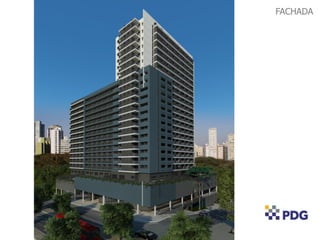 O documento descreve um projeto de torre comercial e residencial com informações sobre: 1) Uma torre comercial com 17 andares e 235 unidades comerciais de 25 a 29m2. 2) Uma torre residencial com 24 andares e 320 unidades residenciais, incluindo estudios e apartamentos de 1 e 2 quartos. 3) Detalhes sobre espaços comerciais no térreo e outros andares e espaços de lazer para os residentes no 4o andar.