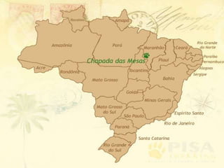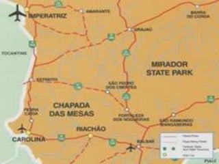 O documento descreve o Parque Nacional da Chapada das Mesas no Maranhão, cobrindo sua localização, formação geológica, biodiversidade, importância para a conservação do Cerrado, ameaças à região e esforços de proteção.