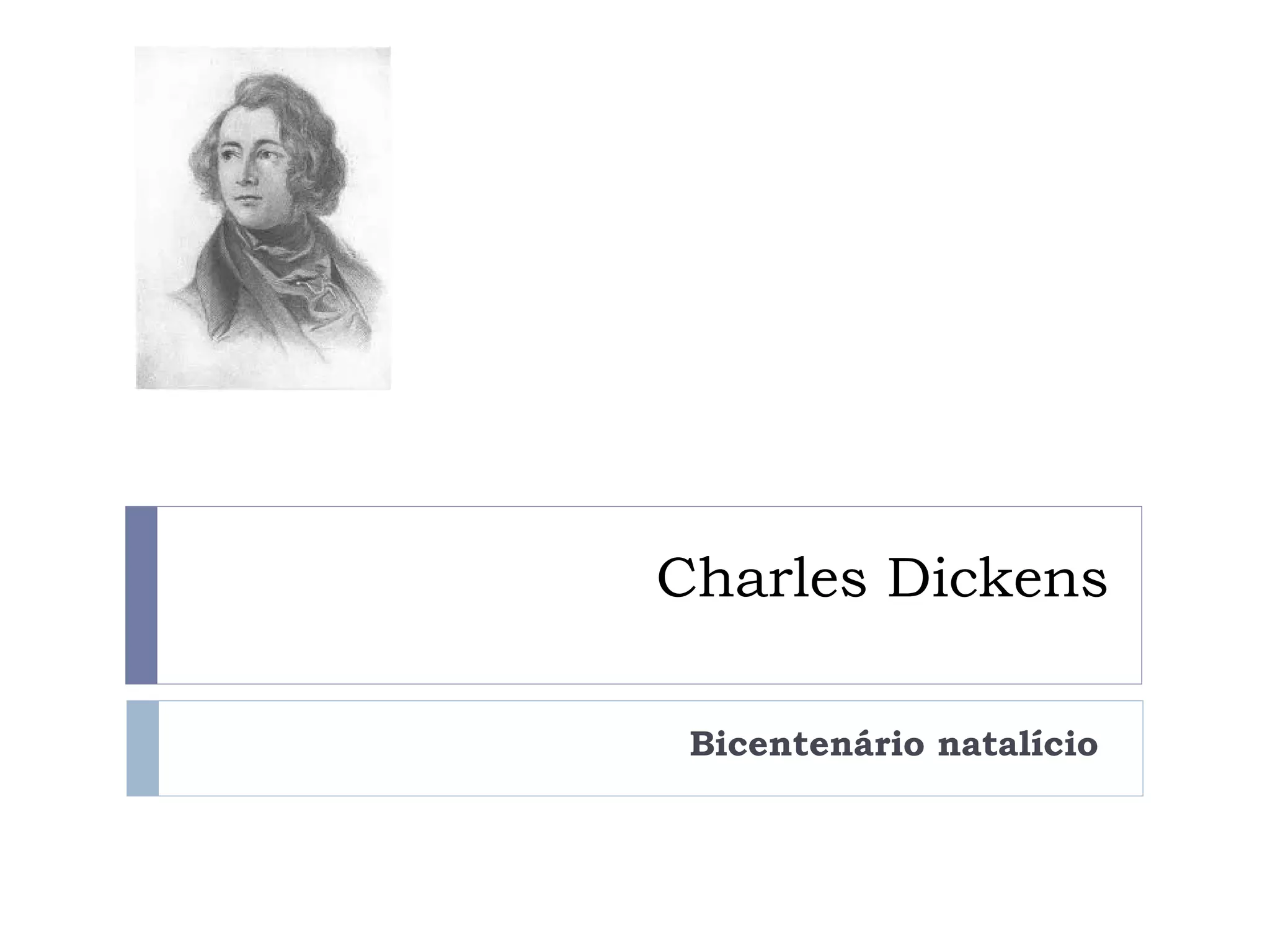Charles Dickens nasceu há 200 anos em Portsmouth, Inglaterra. Sua obra teve grande influência social ao retratar a pobreza e desigualdade da época vitoriana. Em Portugal, as traduções de suas obras começaram em 1839 e ajudaram a popularizar o autor.