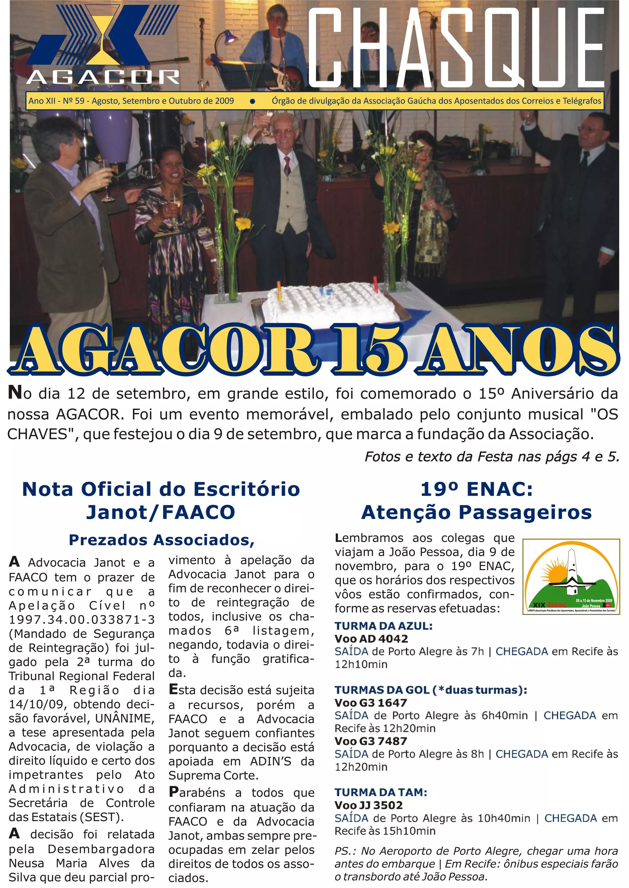 O documento anuncia um evento de 09 a 15 de novembro de 2009 em João Pessoa para a XIX ENAC da APAPC-Associação Paraibana dos Aposentados, Aposentáveis e Pensionistas dos Correios. A associação espera com confiança a aprovação de mais uma conquista.