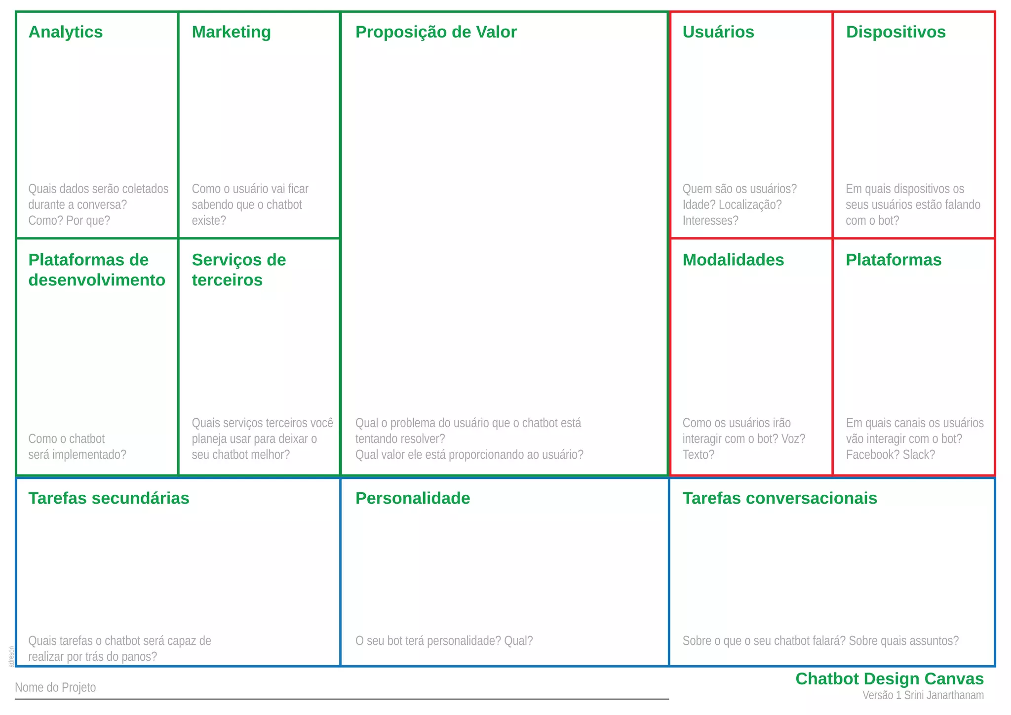 O documento aborda questões essenciais para o desenvolvimento de um chatbot, incluindo a coleta de dados, identificação do público-alvo e suas interações. Ele destaca a importância da proposição de valor e das plataformas em que o bot atuará. Além disso, discute a personalidade do chatbot e a utilização de serviços de terceiros para aprimorar sua eficácia.