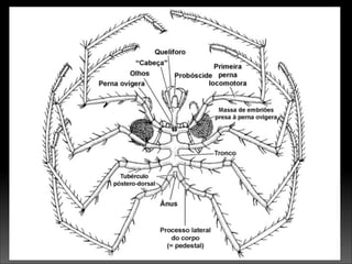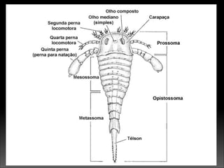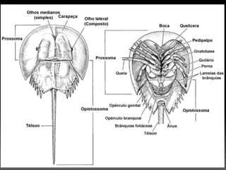 1. Os quelicerados incluem aranhas, escorpiões e ácaros e possuem corpo dividido em prossoma e opistossoma.