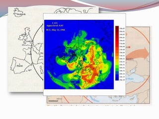 O documento descreve o acidente nuclear de Chernobyl em 1986 na Ucrânia, onde o reator número 4 explodiu, lançando poeira radioativa na atmosfera que contaminou grande parte da Europa e do hemisfério norte. Mais de 400.000 pessoas tiveram que evacuar a área ao redor de Chernobyl e 65 milhões de pessoas foram contaminadas pela radiação liberada, que foi 200 vezes maior do que a bomba de Hiroshima.