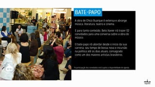 Este documento descreve os planos de divulgação de um evento e projeto em diferentes mídias, incluindo rádio, internet e mídia proprietária. Ele lista os veículos, períodos, tipos de conteúdo, horários e frequências de cada peça de divulgação.