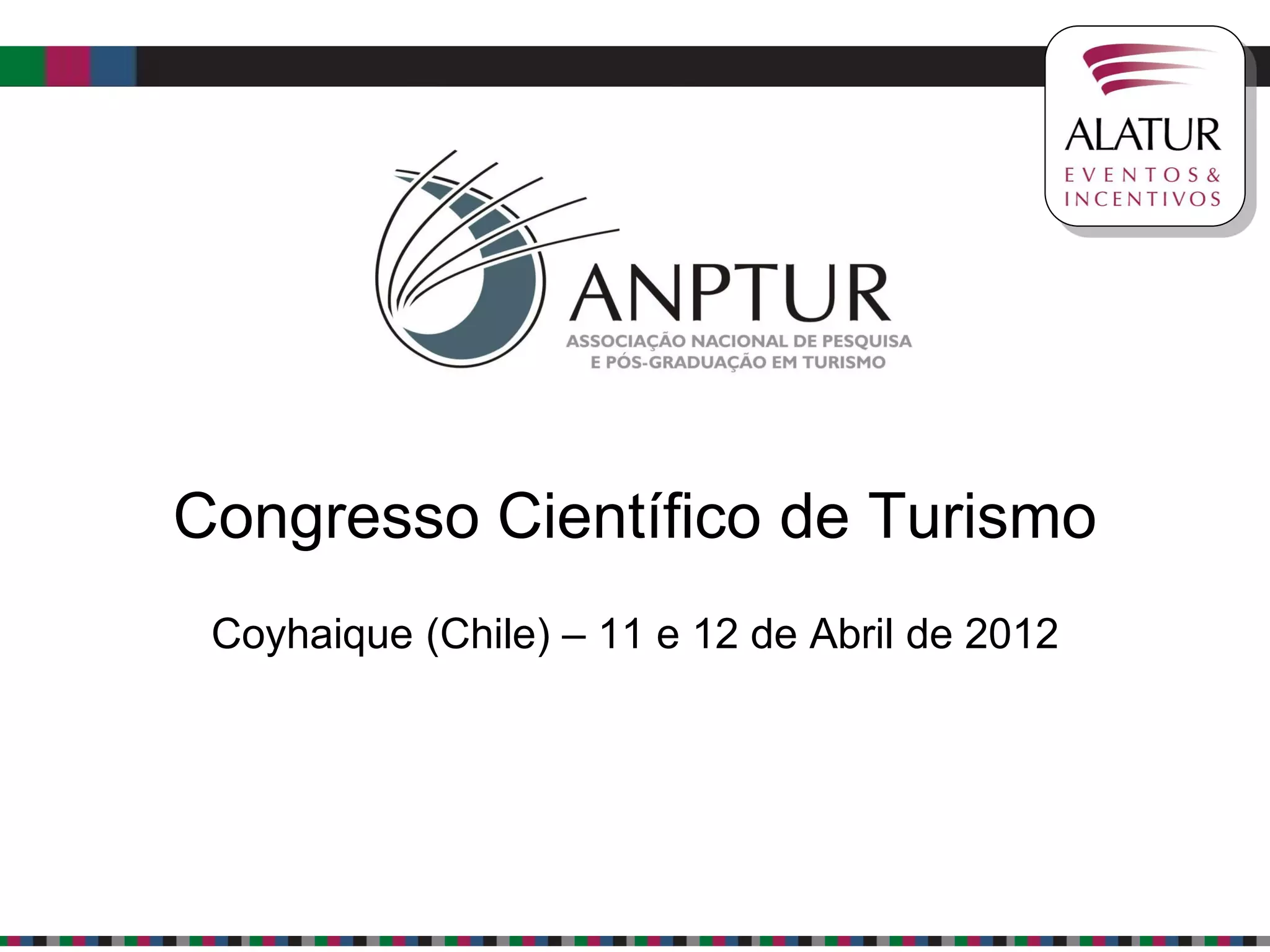 Este documento fornece informações sobre o Congresso Científico de Turismo que será realizado em Coyhaique, Chile, nos dias 11 e 12 de abril de 2012. Ele descreve detalhes sobre a cidade anfitriã Coyhaique, atrações turísticas locais como a Reserva Nacional Coyhaique e a Piedra del Indio, programa do evento e valores para participação.