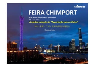 A Chimport 2014 é uma feira de importação que ocorrerá de 23 a 25 de setembro em Guangzhou, China, visando conectar produtos estrangeiros ao crescente mercado chinês. Com uma população de 1.5 bilhões, a China representa a maior oportunidade de consumo global, e a feira oferece suporte a expositores e importadores na introdução de marcas no país. O evento destaca o potencial de crescimento econômico da China no século XXI e promete uma plataforma eficaz para negócios internacionais.