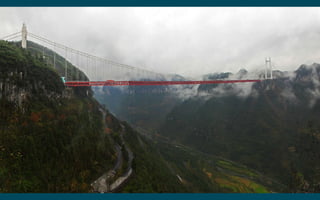 Este documento lista e descreve algumas das rodovias mais impressionantes da China, incluindo a Ponte de Hangzhou, a estrada Guoliang na montanha, e a estrada sinuosa de Tianmen na província de Hunan. Algumas das rodovias notáveis atravessam paisagens deslumbrantes como desertos, montanhas e vales.
