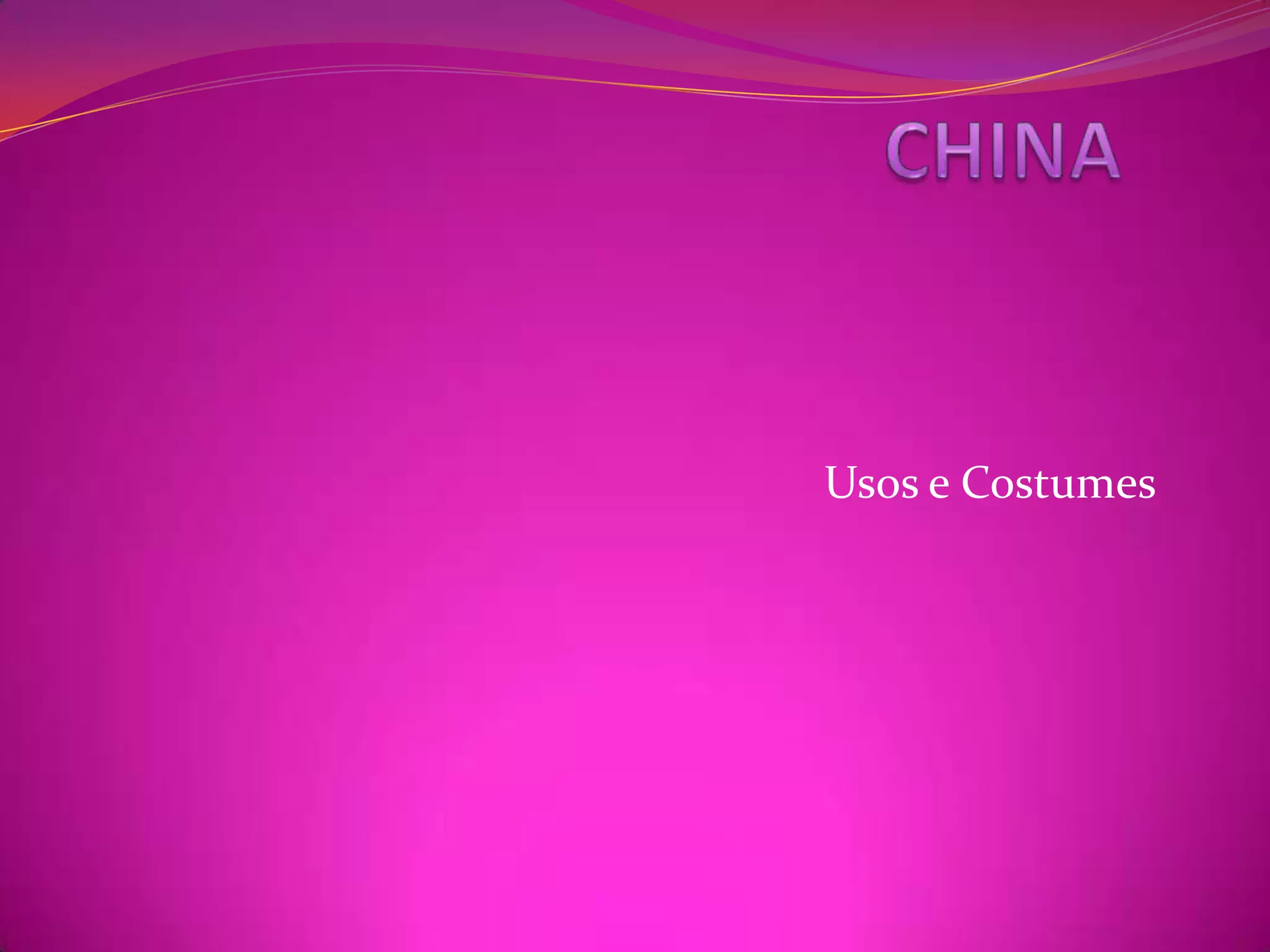 1) Na China, ao invés de perguntar "como vai?", pergunta-se "já comeu?", refletindo a importância da gastronomia chinesa. 2) A música chinesa evoluiu sob influências filosóficas e religiosas, com instrumentos como flauta, sheng e gongo. 3) O vestuário chinês variou ao longo do tempo, com cada período histórico trazendo um novo estilo, diferentemente de outras culturas que adotaram modas contemporâneas mais cedo.