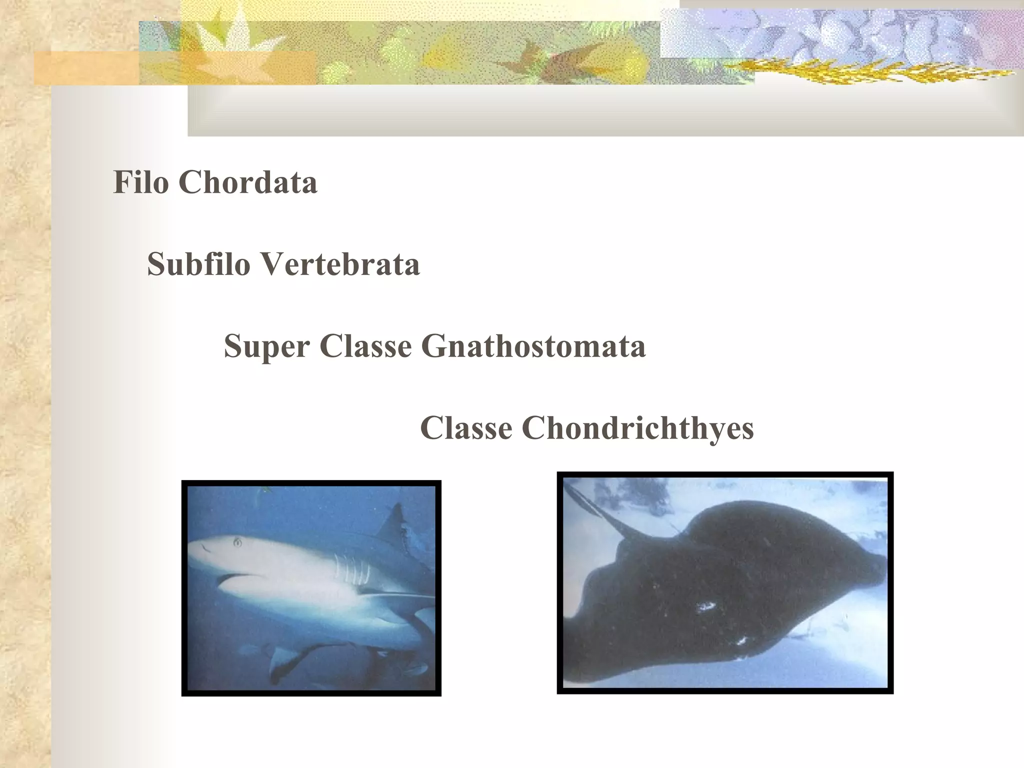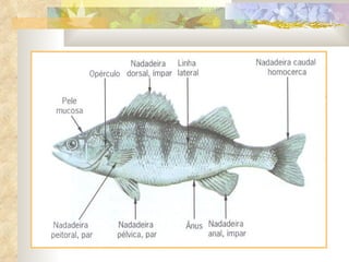 1) O documento descreve as características dos Chondrichthyes e Osteichthyes, duas classes de peixes.