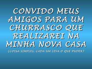 O documento é um convite fictício para um churrasco em uma ilha remota, onde as acomodações e instalações são improvisadas. O anfitrião convida os amigos para um evento simples em uma ilha no Oceano Pacífico, onde ficarão em chalés rústicos e terão acesso limitado a comodidades.