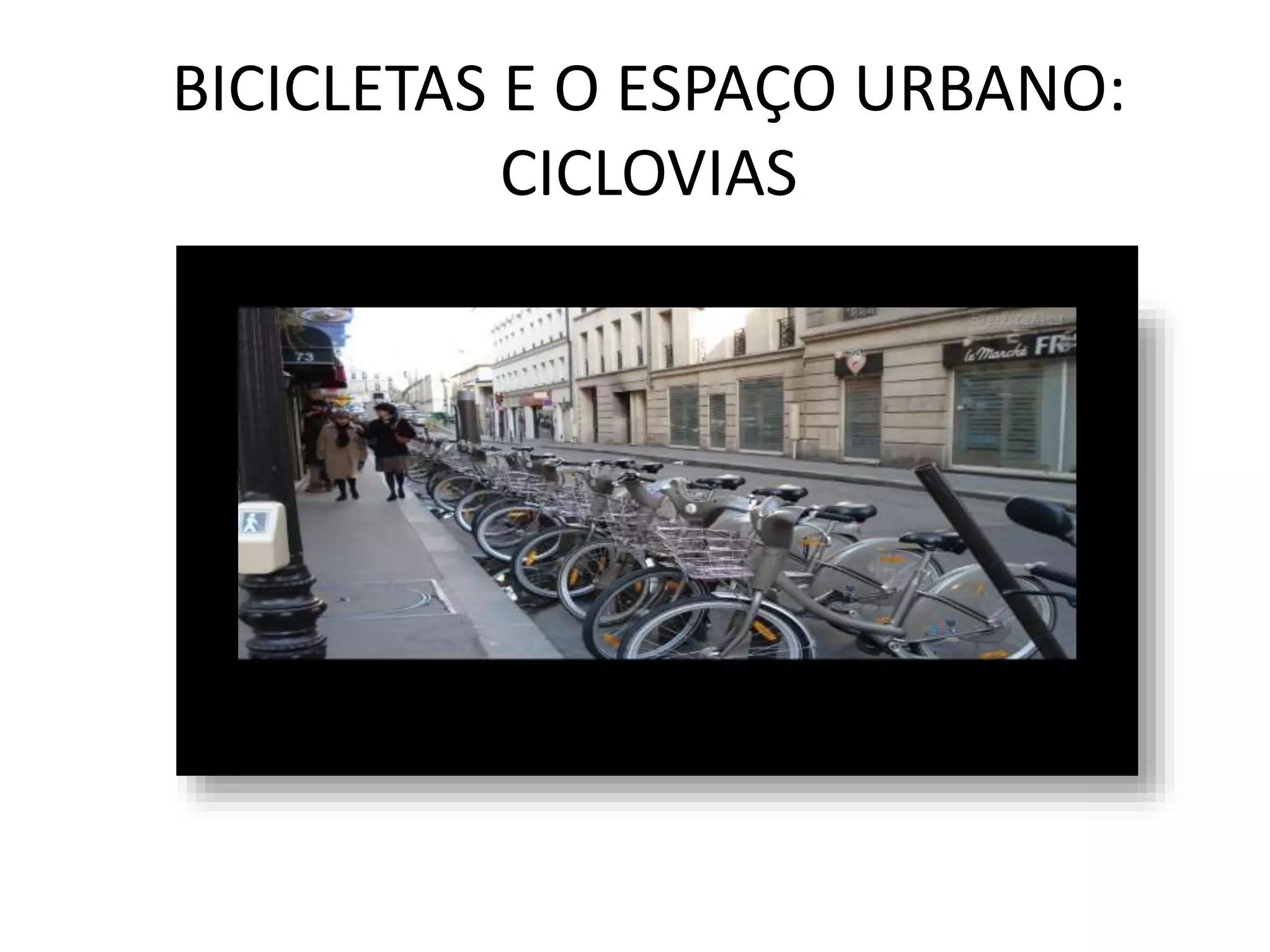 O documento discute as vantagens das bicicletas como meio de transporte urbano e a importância das ciclovias. Ele apresenta os objetivos do projeto de discutir esse tema, como identificar os meios de transporte mais usados e propor projetos para construção de ciclovias na cidade da escola.