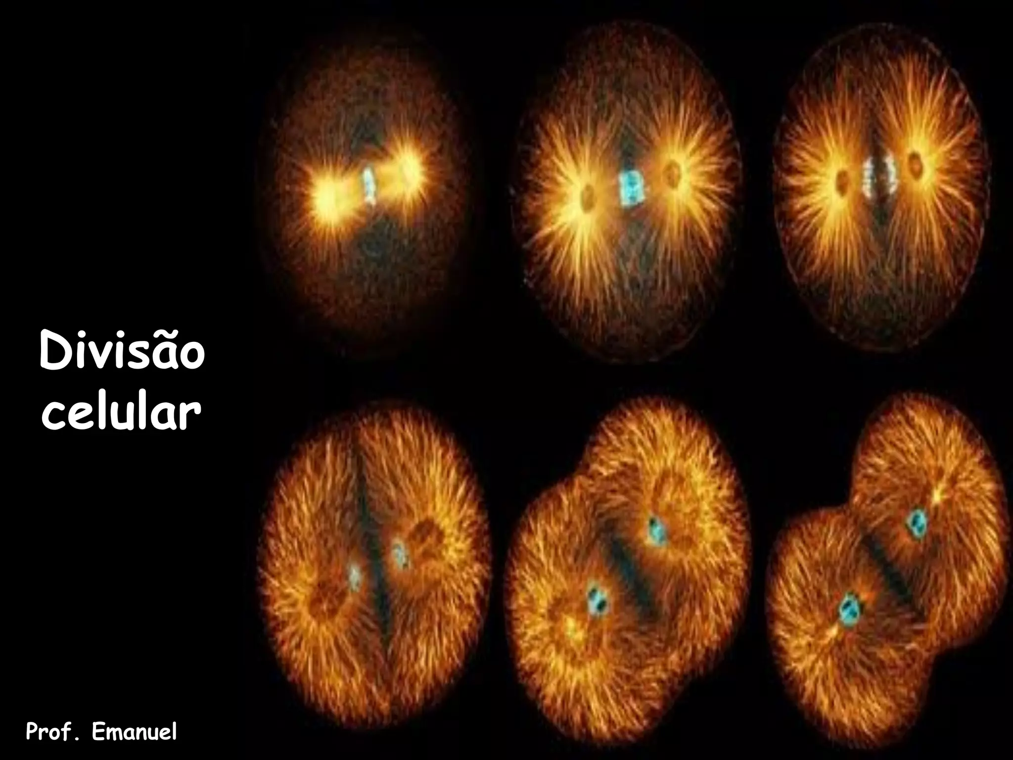 O documento discute os processos de divisão celular, incluindo mitose e meiose. Apresenta as fases da interfase (G1, S, G2), os estágios da mitose (prófase, metáfase, anáfase e telófase), e os mecanismos de controle do ciclo celular e apoptose. Também descreve as características da mitose animal e vegetal.