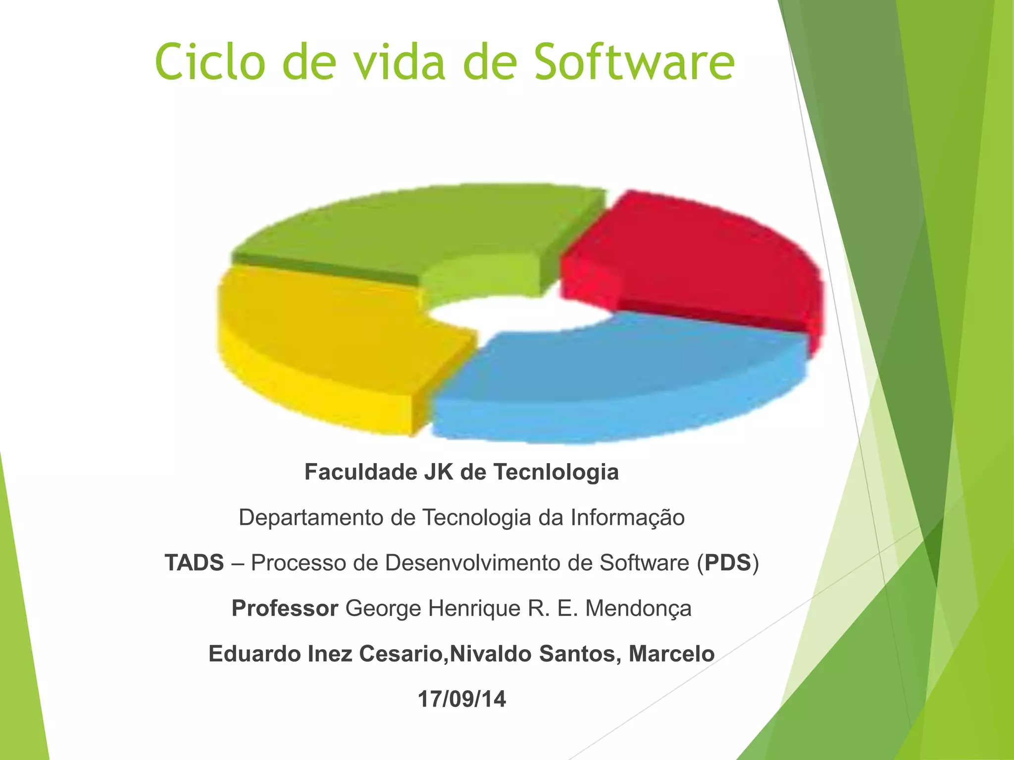 Este documento discute vários modelos de ciclo de vida de software, incluindo cascata, prototipação, espiral, incremental, RAD e modelo em V. Cada modelo é explicado brevemente com suas vantagens e desvantagens. O documento fornece uma introdução geral aos principais modelos de ciclo de vida utilizados no desenvolvimento de software.