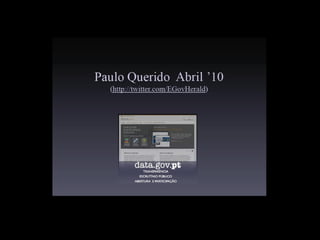 O documento discute a importância da cidadania 2.0 e o acesso a informações públicas em Portugal, destacando a necessidade de dados acessíveis, atualizados e de fácil processamento. Cita várias opiniões de especialistas sobre a simetria de informação e o papel dos organismos públicos na facilitação desse acesso. O autor propõe o desenvolvimento de aplicações que utilizem informações públicas e a valorização do uso de ferramentas digitais para promover o engajamento cívico.