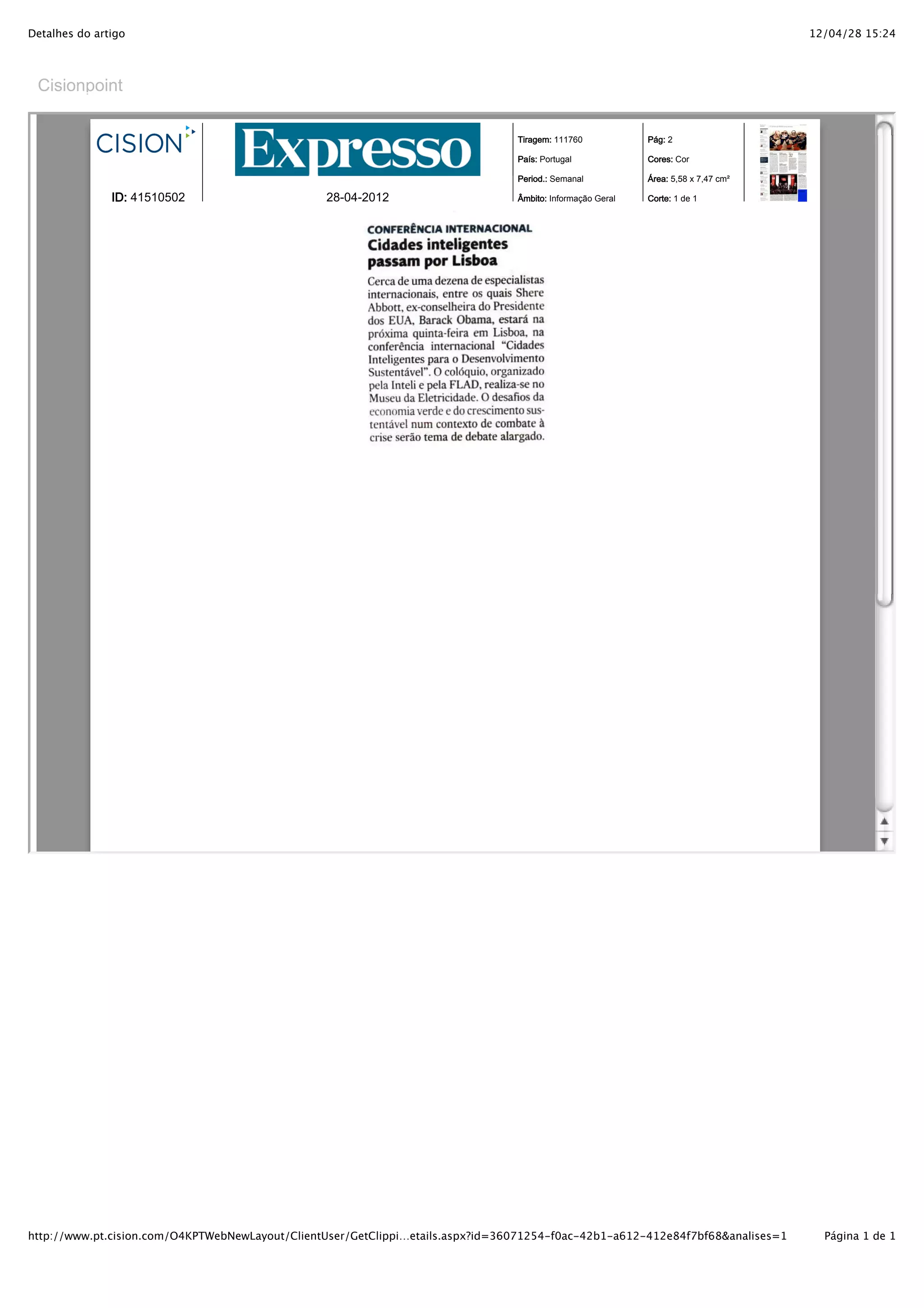 O documento fornece detalhes sobre um artigo, incluindo sua tiragem, país, período de publicação, área e escopo. Ele também fornece um ID, data e link para mais detalhes sobre o artigo.