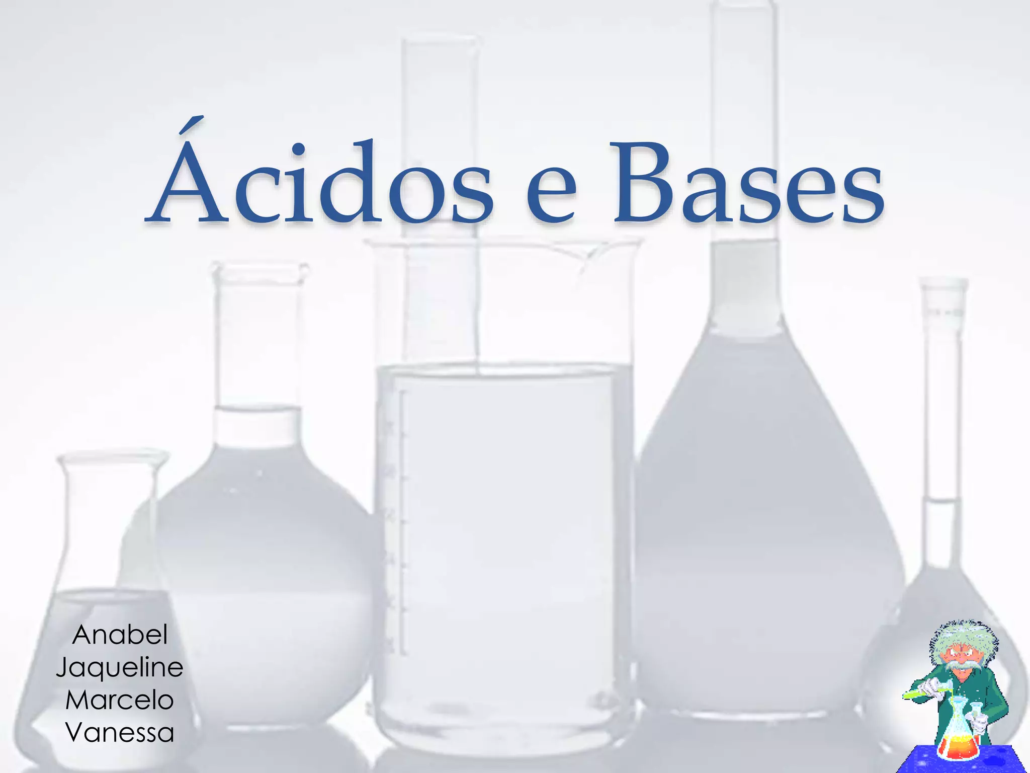 O documento discute as propriedades e classificações de ácidos e bases. Ácidos são substâncias que liberam íons hidrogênio em solução aquosa, enquanto bases liberam íons hidróxido. Os principais ácidos discutidos incluem ácido sulfúrico, fosfórico e nítrico. As principais bases incluem hidróxido de sódio, magnésio e cálcio. O documento também fornece detalhes sobre a nomenclatura de ácidos e bases.