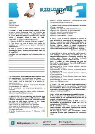 O documento descreve um experimento de Meselson e Stahl cultivando bactérias com isótopos de nitrogênio para estudar a replicação semiconservativa do DNA. Após cultivar bactérias com nitrogênio-15 por 14 gerações, elas foram transferidas para meio com nitrogênio-14. Após a primeira geração, o DNA ocupou uma nova posição, mostrando que cada fita do DNA original é conservada na nova molécula.