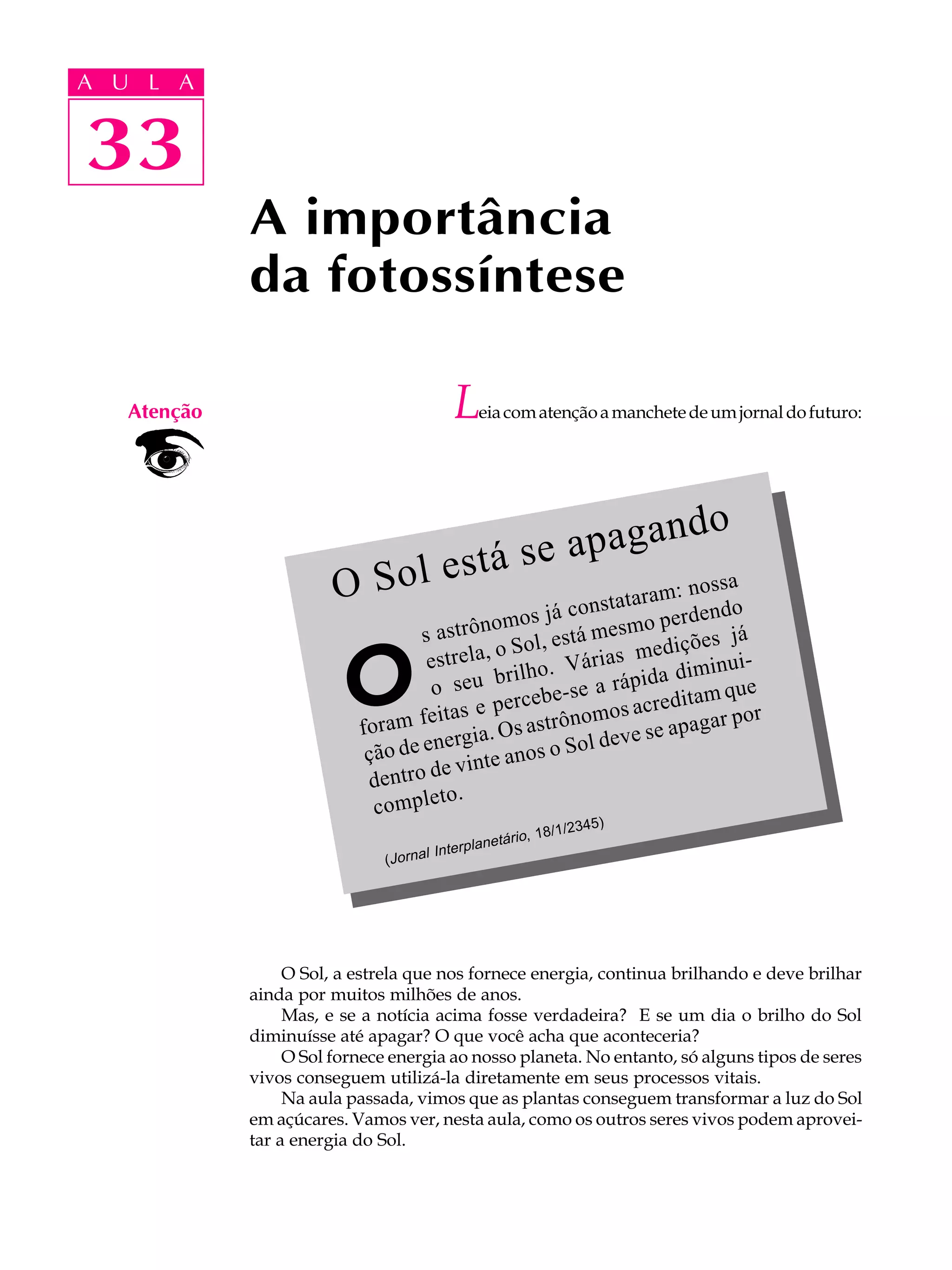 1. O texto discute a dependência de todos os seres vivos em relação à fotossíntese realizada pelas plantas.
