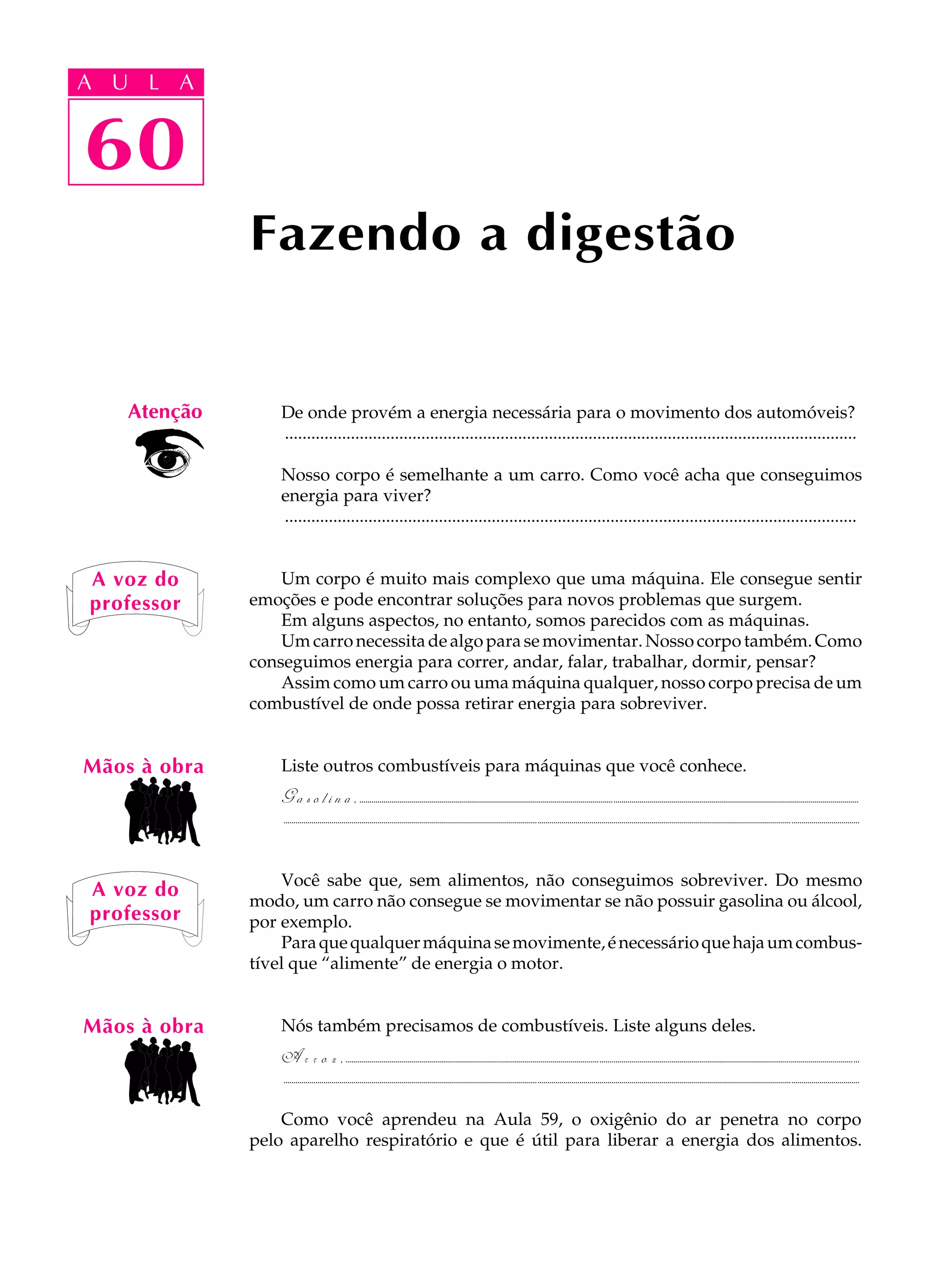1) Que o corpo precisa de energia para funcionar, que vem dos alimentos ingeridos;