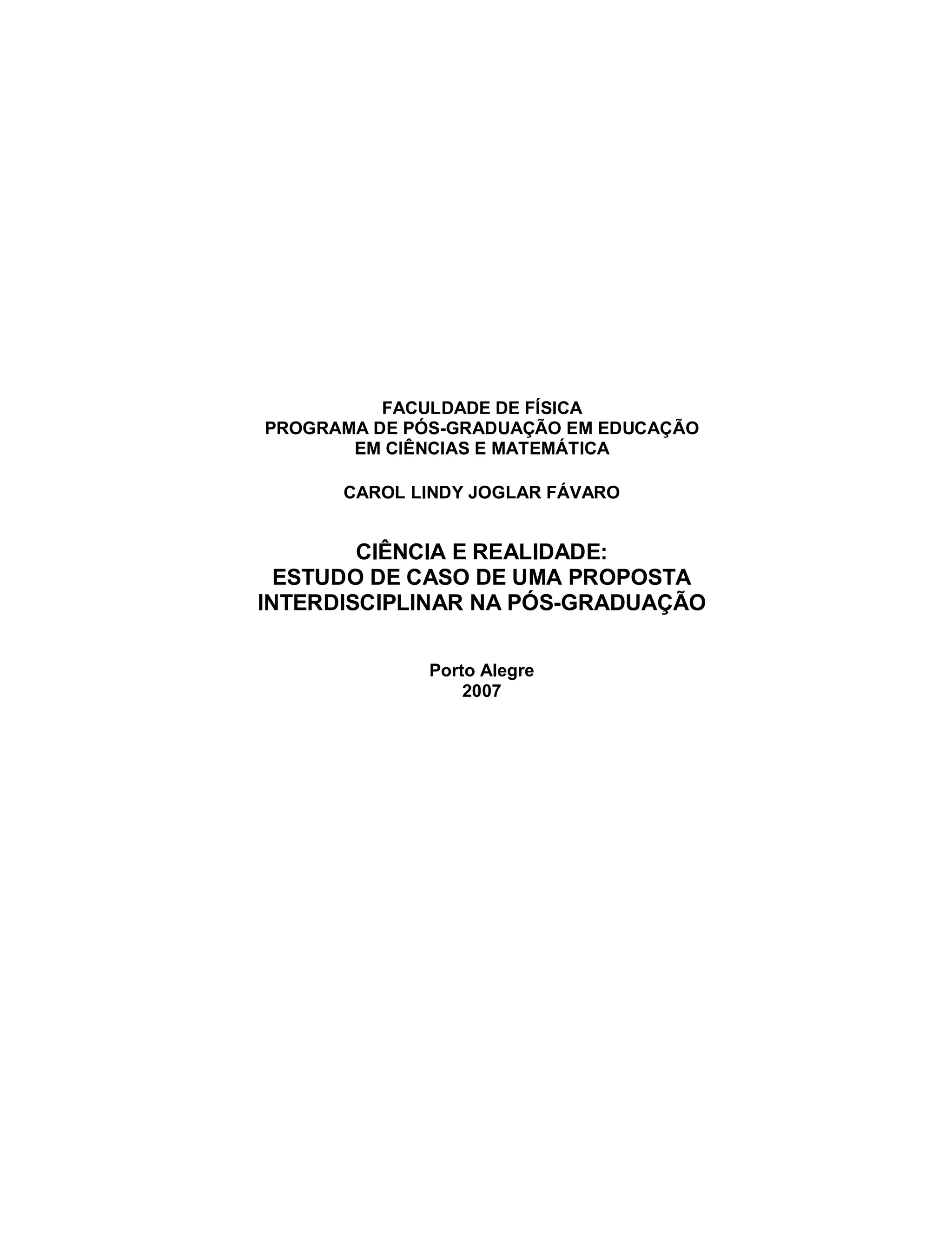 Esta dissertação analisa os impactos da disciplina "Ciência e Realidade" na vida pessoal e profissional de alunos de mestrado. A disciplina propõe uma abordagem interdisciplinar baseada no ensino de valores e na construção de Unidades de Aprendizagem. Por meio de questionários e depoimentos, o estudo avalia os avanços e mudanças provocados pela disciplina nos alunos e em suas unidades escolares.