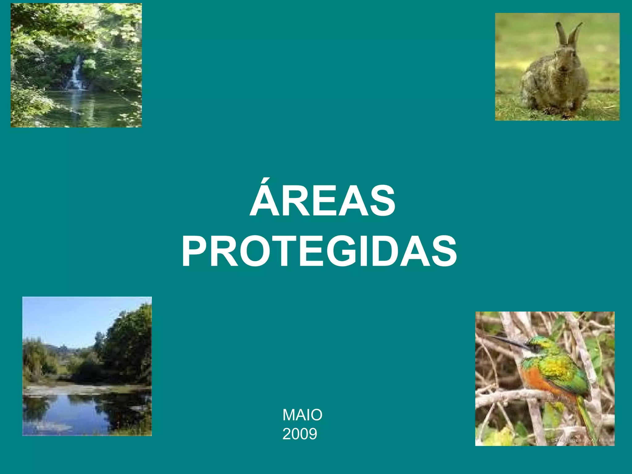O documento discute áreas protegidas no Brasil, definindo-as como espaços geográficos dedicados à conservação da natureza. Ele classifica e descreve diferentes tipos de áreas protegidas como parques nacionais, naturais e reservas naturais. Além disso, lista espécies da flora e fauna brasileiras ameaçadas de extinção.