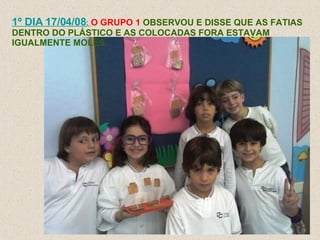 Os alunos foram divididos em grupos para observar o que acontece com pedaços de pão colocados dentro e fora de um plástico. Eles notaram que o pão fora do plástico ficou duro enquanto o dentro permaneceu mole, concluindo que a água no pão escapa na forma de vapor e é retida pelo plástico. Outros comentários discutiram como a água se transforma em vapor e nuvens e como a saliva ajuda a comer alimentos sem água.