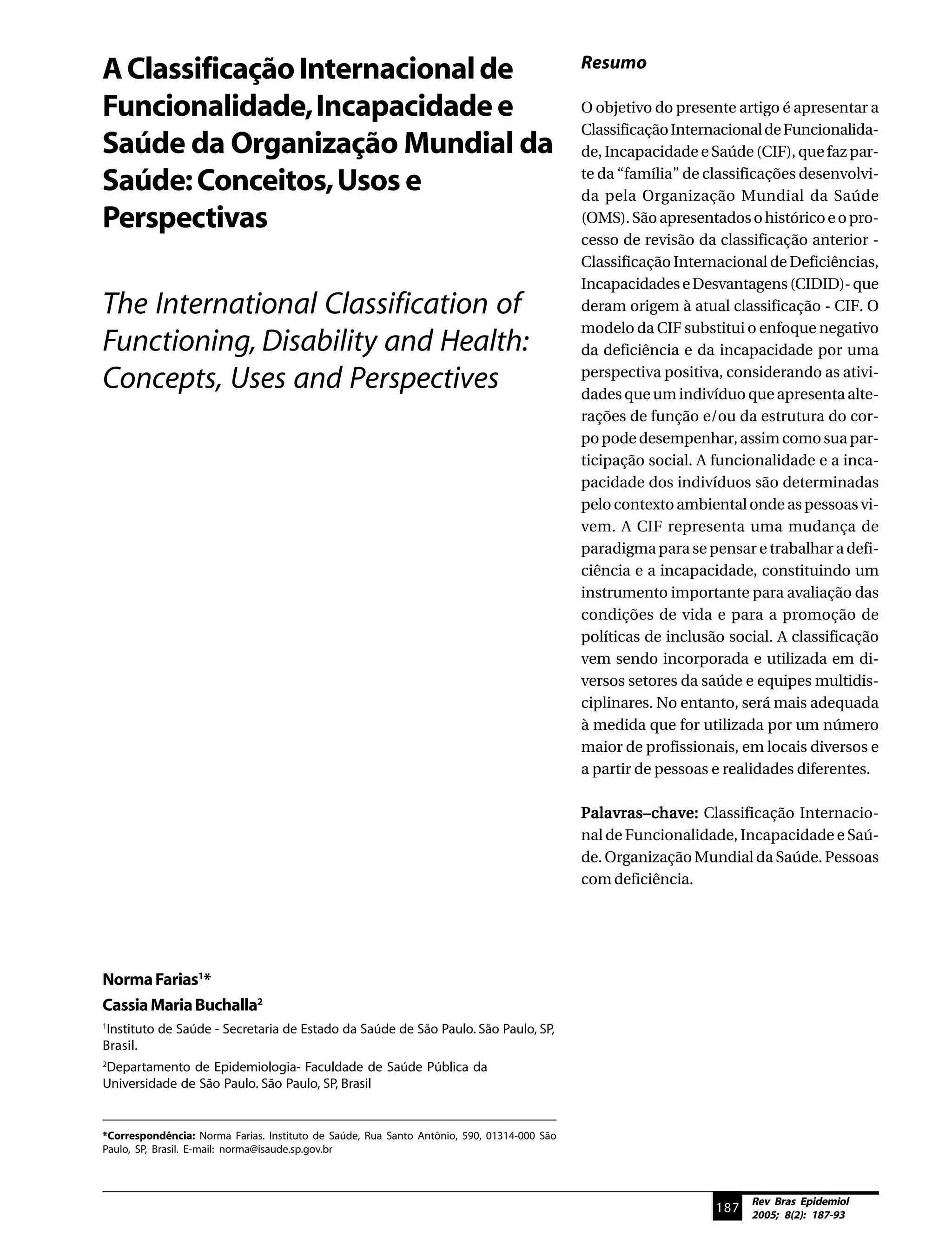 O documento discute a Classificação Internacional de Funcionalidade, Incapacidade e Saúde (CIF) da Organização Mundial da Saúde. A CIF substitui a perspectiva negativa de deficiência por uma visão positiva das atividades que as pessoas podem realizar. A funcionalidade e incapacidade dependem do contexto ambiental. A CIF representa uma mudança de paradigma para pensar deficiência e promover inclusão social.