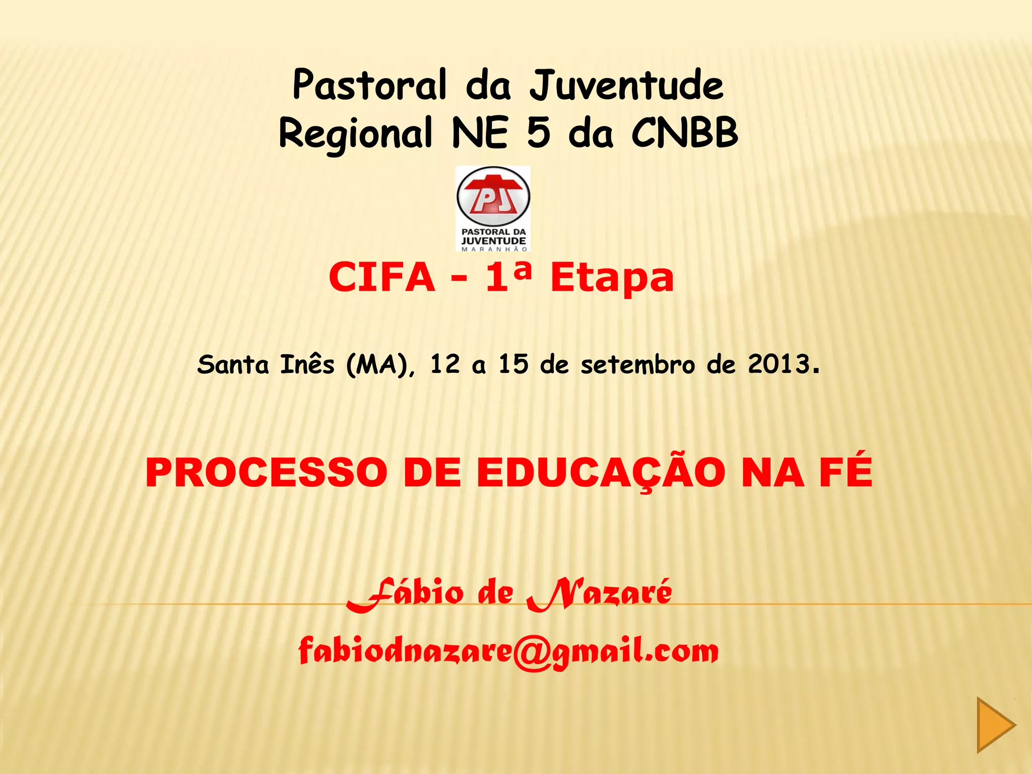 O documento discute o processo de educação na fé para jovens. Ele descreve as etapas deste processo, incluindo a descoberta do grupo, da comunidade, dos problemas sociais, da organização mais ampla e das causas estruturais. Também discute abordagens pedagógicas como a pedagogia pastoral, de valores, para comunicação, para o compromisso e para inclusão.