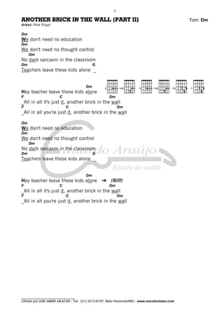 O documento contém as letras e acordes de cinco músicas: "Don't Let Me Down" dos Beatles, "Another Brick in the Wall (Part II)" do Pink Floyd, "A Volta do Boêmio" de Adelino Moreira, "As Rosas Não Falam" de Cartola e "Stairway to Heaven" do Led Zeppelin.