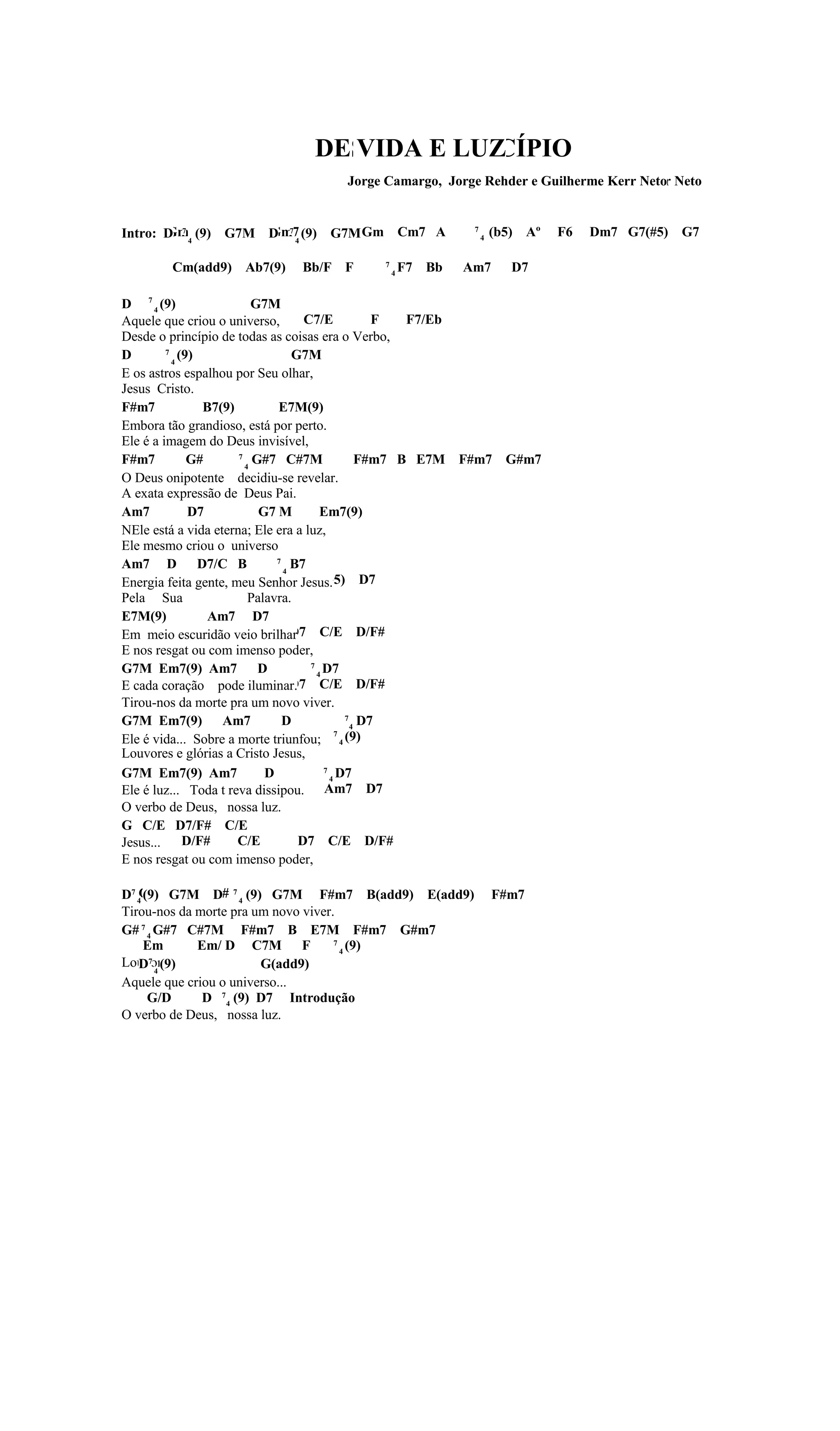 Este documento apresenta três músicas cristãs que celebram a vida e obra de Jesus Cristo. A primeira música descreve Jesus como "O Verbo" que se tornou humano e habitou entre nós cheio de graça e verdade. A segunda música fala sobre o poder que Jesus dá às pessoas de se tornarem filhos de Deus. A terceira música narra o milagre de Jesus em Caná, quando transformou água em vinho durante um casamento.