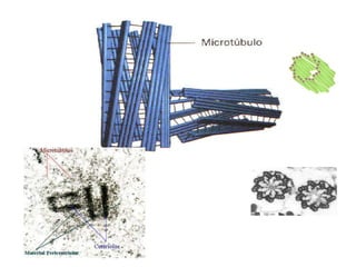 Os centríolos são organelas microtubulares encontradas em todas as células, exceto procariontes e plantas. Cada célula possui um par de centríolos perpendiculares formados por nove conjuntos de três microtúbulos. Os centríolos estão localizados no centrossomo e são responsáveis pela formação do fuso mitótico e cílios/flagelos, auxiliando na divisão celular e movimento.