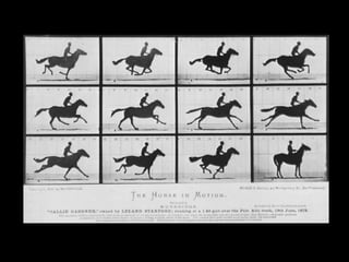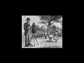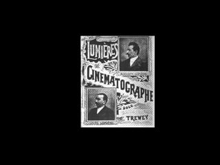 O documento descreve a invenção e evolução inicial do cinema no século XIX, desde os primeiros dispositivos ópticos para imagem em movimento como o quinetoscópio de Edison até as primeiras exibições públicas dos Irmãos Lumière em 1895 que marcam o início do cinema. Também aborda os filmes pioneiros conhecidos como "cinema de atrações" que visavam fascinar e entreter ao invés de narrar histórias.