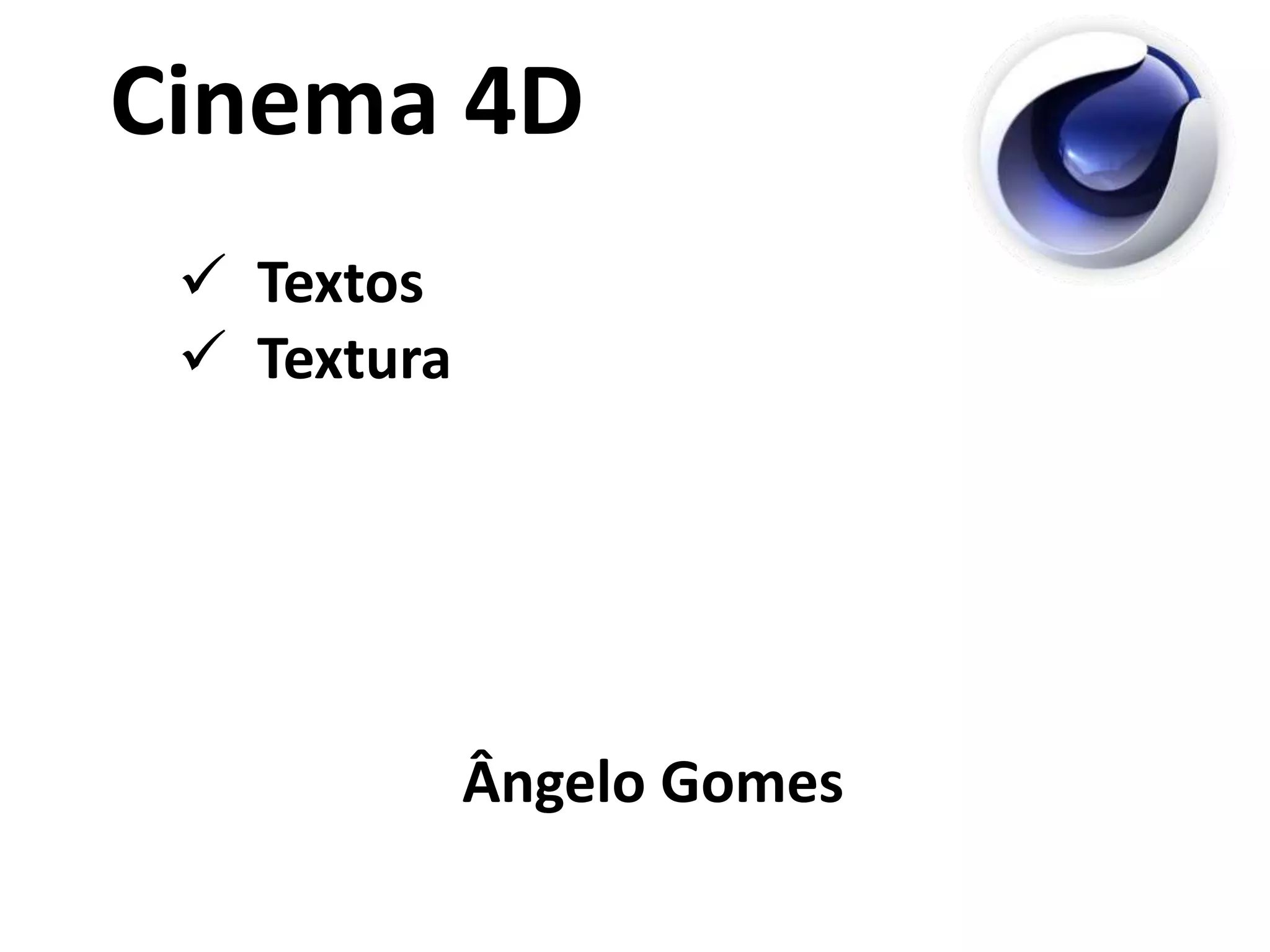 O documento discute as ferramentas Cinema 4D e MoGraph. MoGraph é um conjunto de ferramentas integradas no Cinema 4D que permite criar automatismos de forma intuitiva e rápida, utilizando as ferramentas básicas do Cinema 4D. Textura refere-se à aplicação de padrões de imagem em objetos 3D.