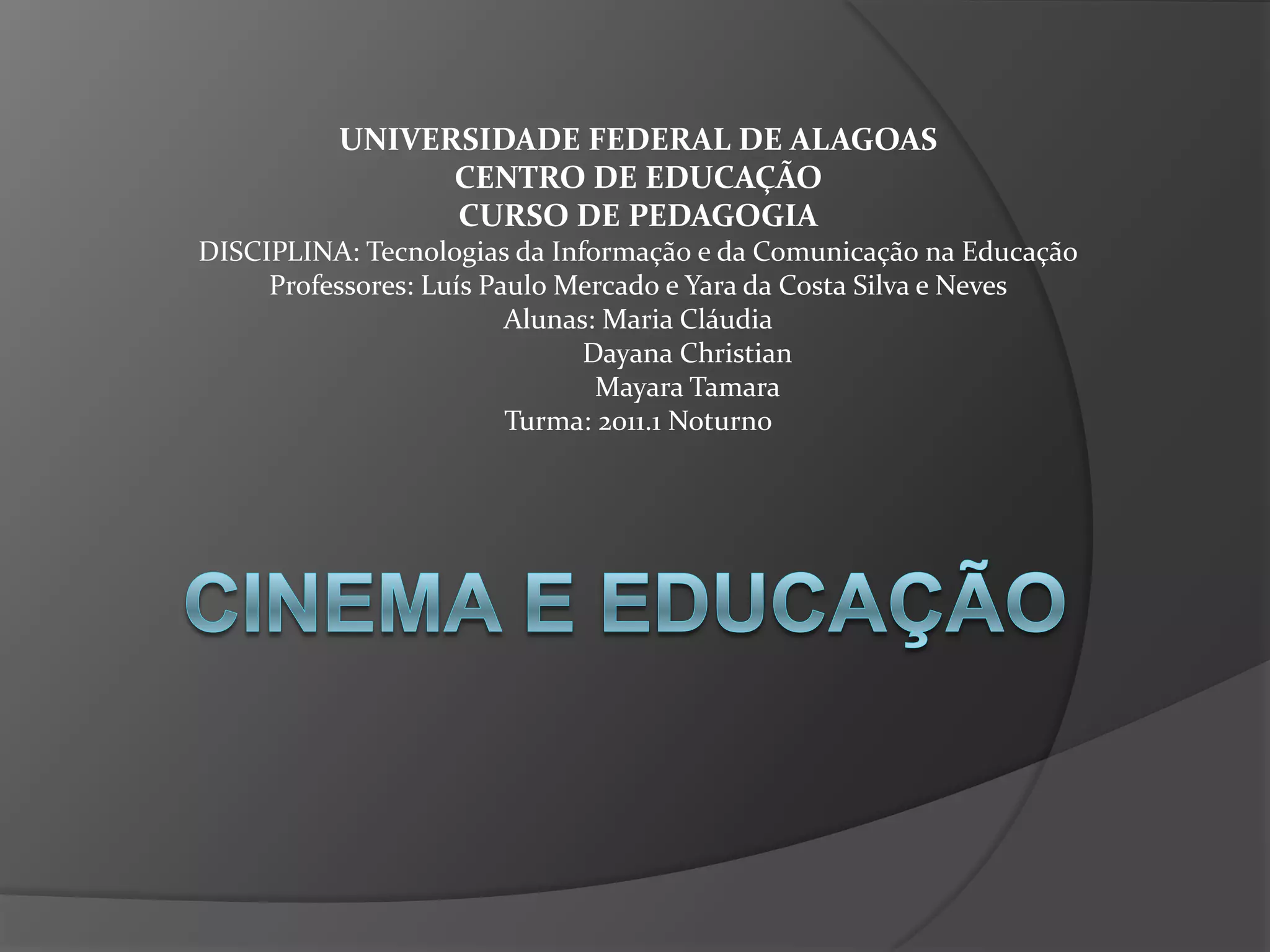 O documento discute a relação entre cinema e educação no Brasil nas primeiras décadas do século XX. Apresenta o Instituto Nacional de Cinema Educativo, que produziu centenas de filmes pedagógicos entre 1936 e 1964, e discute o potencial do cinema como ferramenta educativa na sala de aula para ensinar conceitos de forma mais dinâmica e envolver os alunos.