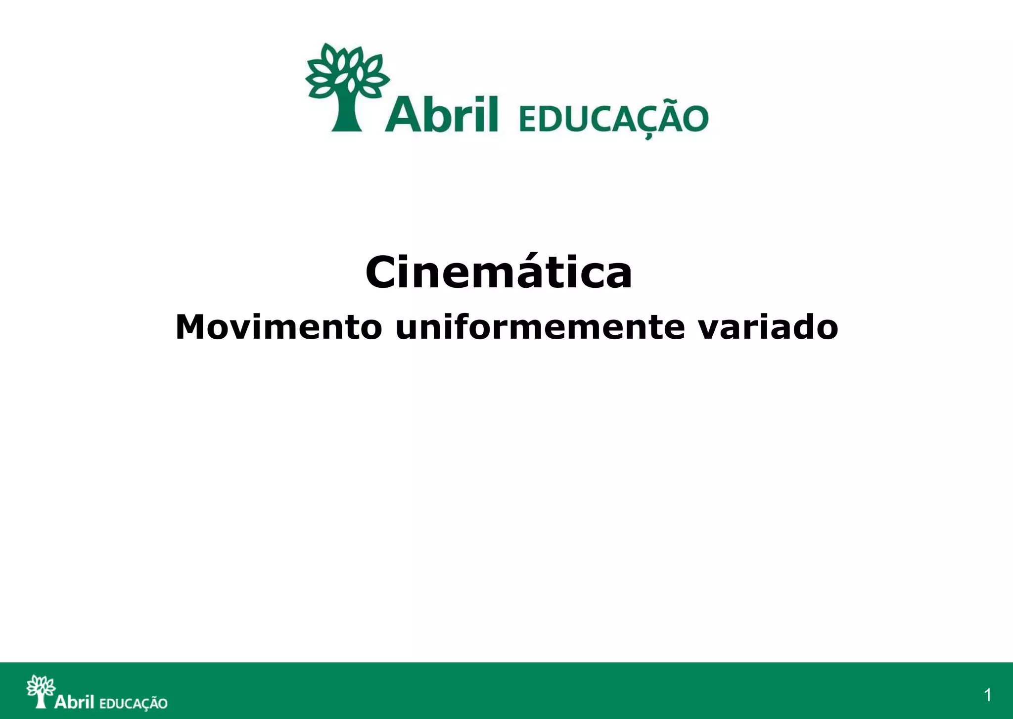 O documento discute conceitos fundamentais de cinemática, incluindo movimento uniformemente variado, aceleração escalar média e instantânea, e movimento circular uniforme. Aborda definições de velocidade angular média, frequência, ângulo horário e relações entre essas grandezas no movimento circular. Também menciona a queda livre dos corpos e o uso de polias para acoplar motores a sistemas com diferentes frequências de rotação.