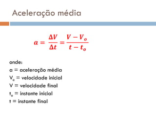 1) O documento discute conceitos de cinemática, incluindo movimento retilíneo uniformemente variado (MRUV), cuja velocidade varia uniformemente com o tempo e a aceleração é constante.