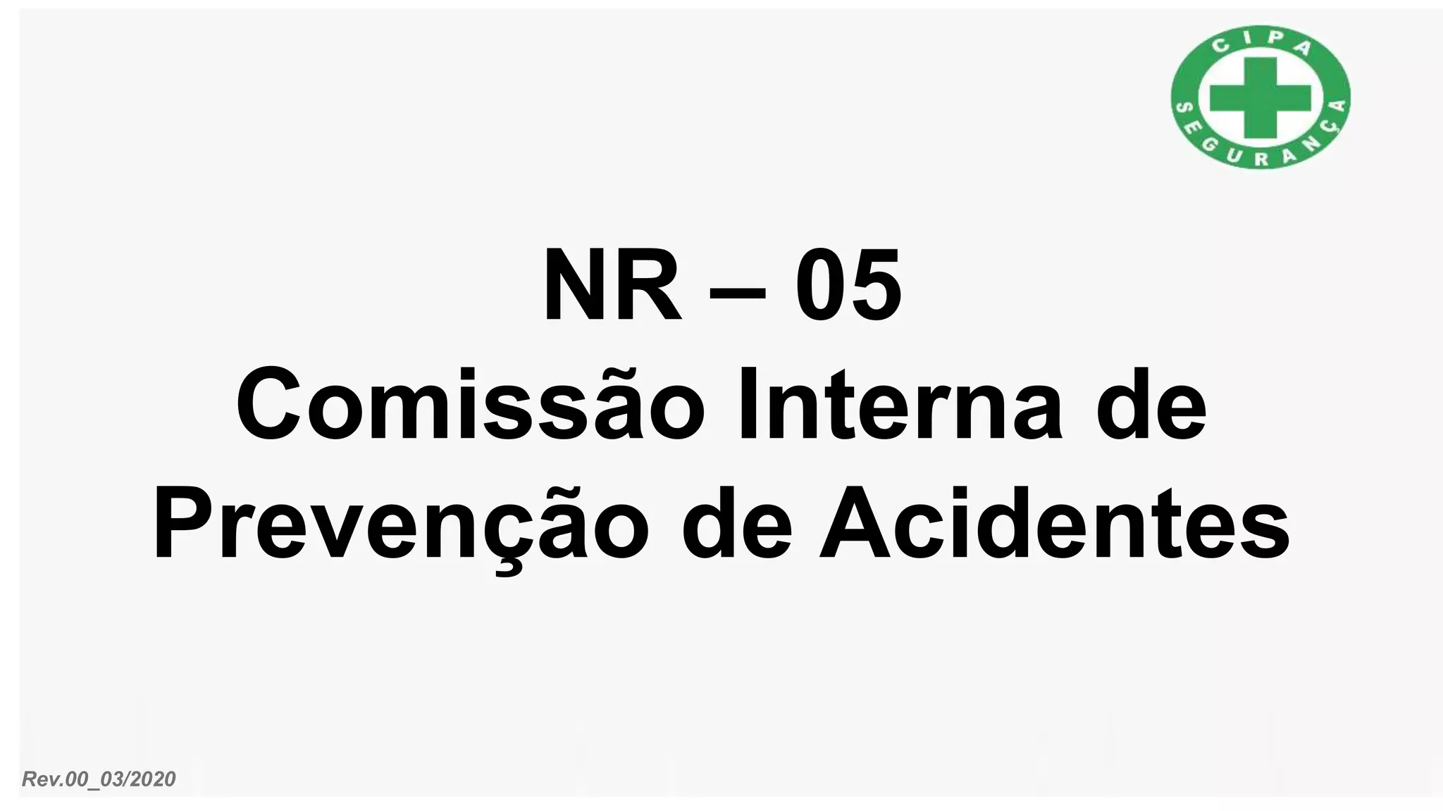 O documento discute normas de segurança e saúde no trabalho, definindo o objetivo e atribuições da Comissão Interna de Prevenção de Acidentes (CIPA). Também aborda acidentes de trabalho, doenças ocupacionais, transporte manual de cargas, produtos químicos, incêndios e primeiros socorros.