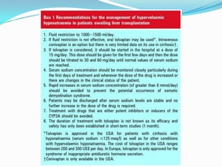 2) A hiponatremia é comum em pacientes com cirrose e está associada a piores resultados após transplante, podendo ser tratada com vaptans ou reposição lenta de sódio.