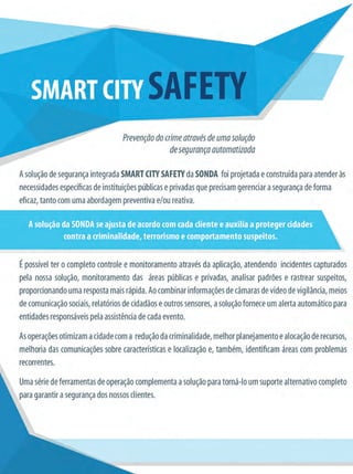 do Porto Maravilhaexplorem todo o potencial da região, e que a ex- periência vivida aqui possa servir como exemplo de inovação urbana para cidades do Brasil e do mundo”, pontua Albuquerque. Nina Lualdi, diretora sênior de Inovação da Cisco na Amé- rica Latina e uma das responsáveis pelo projeto desenvolvi- do em parceria com a prefeitura da cida- de do Rio de Janeiro, completa que, “não apenas turistas, mas toda a população da região foi envolvida, pode e deve usufruir desta modernização, e tornar-se protagonista da cidade”. Interatividade Quatro estações interativas foram instaladas pela Cisco em locais estratégicos do Por- to Maravilha. Os totens propor- cionam o engajamento de cida- dãos e visitantes com a cidade, apresentando informações diver- sas - como localização das prin- cipais atrações, mobilidade, ser- viços públicos, agenda cultural, entre outras. 25 proporcionar ao município mais e melhores ferramentas para sua operação, planejamento e tomada de decisões. Entre estas soluções estão inovações das startups ven- cedoras do Desafio Cisco de Ino- vação Urbana. A ideia, resume Laercio Albuquer- que, presidente da Cisco Brasil, é transformar “o cidadão em protago- nista de uma cidade digitalizada e integrada”. Para ele, um município inteligente e humano é aquele que possibilita a criação de serviços para o cidadão conectar-se com seu bairro, com o governo, com as diferentes comunidades e com a estrutura física local. Os serviços e aplicativos que tornam o Porto Maravilha um la- boratório urbano envolvem mo- bilidade, colaboração, turismo, meio ambiente, acessibilidade, fomento à inovação e planejamen- to urbano. Uma gama de soluções viabilizada por meio da instalação da rede Wi-Fi urbana e de um data center dedicado à região. O Wi-Fi público gratuito, que teve sua primeira fase anun- ciada em maio, cobre atualmente a Praça Mauá (através de 6 hotspots localizados nos mobiliários urbanos) e a Orla Conde, entre os armazéns 1 e 8. “Com estas inicia- tivas de inovação ur- bana, queremos que a tecnologia permita que visitantes, mora- dores e empreendedores Com telas sensíveis ao toque, as estações também oferecem expe- riências interativas para melhor explorar a região e suas atrações, como o “Felicitômetro”, que dispo- nibiliza em tempo real um ranking dos locais com maior “nível de fe- licidade” no Porto Maravilha, por meio do monitoramento de men- sagens postadas nas redes sociais. Outra inovação é o aplicativo “Ouça a Cidade”. Criado pela Cisco, o sistema reúne dados sobre co- nectividade, mobilidade urbana, previsão do tempo, engajamento nas redes sociais, e os codifica em melodias originais disponíveis em diferentes canais para o usuário. O ritmo e o estilo das músicas mudam de acordo com o fluxo de dados em tempo real, com a curadoria do compositor e designer de som Robert Thomas, especializado em explorar como a música e o som podem reagir aos dados, localização e comportamento. A velocidade média dos ônibus, por exemplo, dita o ritmo da mú- sica, enquanto a quantidade de pessoas conectadas à plataforma Cisco é representada pelos sons abstratos e atmosféricos. O tem- TOTENS DIGITAIS E INTERATIVOS APRESENTAM INFORMAÇÕES DIVERSAS SOBRE A CIDADE DO RJ SISTEMAS DE ÁUDIO E VIDEOVIGILÂNCIA CAPTAM SONS INCOMUNS E EMITEM ALERTAS AO CENTRO DE COMANDO E CONTROLE DO PORTO MARAVILHA ERIKBARROSPINTO ERIKBARROSPINTO