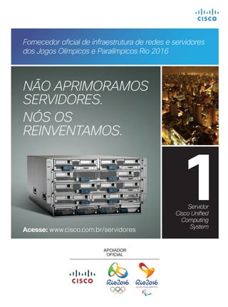 A edição de 2014 da Cisco Live Magazine destaca a liderança de Rodrigo Dienstmann na Cisco Brasil e a evolução do atendimento bancário, que se torna cada vez mais digital e acessível. A revista também aborda a produção local de equipamentos que reduz custos e a crescente importância da Internet das Coisas (IoE) com potencial econômico significativo. Além disso, a publicação discute o investimento em segurança cibernética e a necessidade urgente de profissionais qualificados na área.