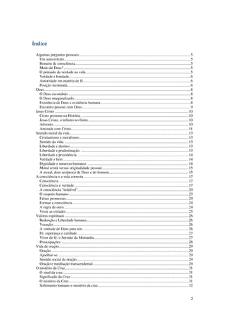 Este documento apresenta uma série de citações do cardeal Joseph Ratzinger sobre diversos temas religiosos e morais. As citações foram selecionadas de entrevistas, homilias e conferências anteriores ao seu pontificado como Papa Bento XVI. O documento inclui um índice dos temas abordados e as fontes das citações.