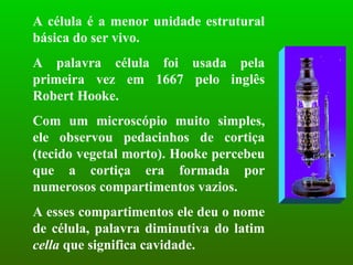 O documento descreve as principais características das células eucarióticas, comparando células animais e vegetais. Apresenta os principais organelos celulares como núcleo, mitocôndrias, cloroplastos, retículo endoplasmático e aparelho de Golgi, e explica suas funções na célula. Também destaca diferenças entre células animais e vegetais, como a presença de parede celular e plastídios nas células vegetais.